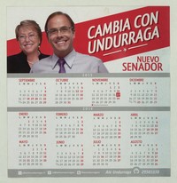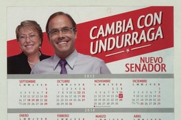 Cambia con Undurraga Nuevo Senador. [estampa] : [Chile] : [Editor no identificado], [2013]. 1 calendario (afiche) : color ; 25 x 24 cm. .