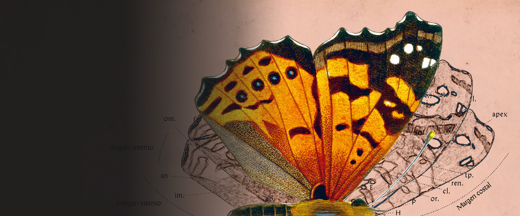 Esta imagen fue construida a partir de la ilustración de la mariposa Vanessa Carye proveniente del Atlas de la Historia Física y Política de Chile de Claudio Gay. La composición gráfica representa, a través de las tres fases del vuelo de la mariposa, las diversas capas de trabajo detrás de los contenidos de Memoria Chilena.