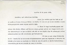 [Carta] 1979 junio 22, Sevilla [a] Querida y ay! silenciosa Matilde [manuscrito] Hugo E[milio Pedemonte].