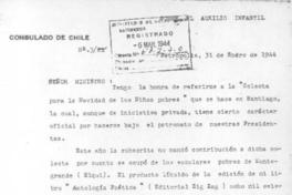 [Carta], 1944 Petrópolis, Brasil <al> Ministro de RR.EE. de Chile [manuscrito] Lucila Godoy.