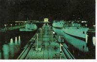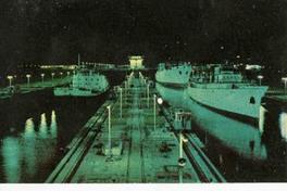 Tarjeta postal con una reproducción "Vista de noche - Exclusas de Miraflores Canal de Panamá".
