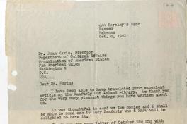 [Carta] 1961 octubre 6, Nassau, Bahamas [a] Juan Marín [manuscrito] Elizabeth Russell.