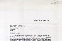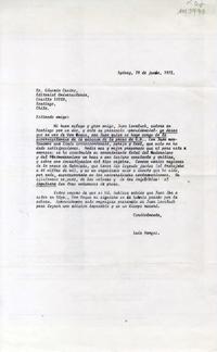 [Carta] 1972 junio 19, Santiago, Chile [a] Eduardo Castro [Le-Fort] [manuscrito] Luis Vargas Saavedra.