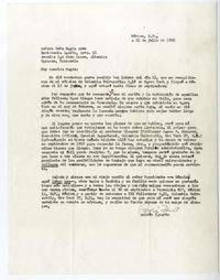 Carta de asuntos personales. El remitente agradece carta de Magda Arce y ofrece su ayuda con su tesis de Lastarria, entre otros asuntos.