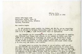 México, D.F. [a] Magda Arce, Caracas, Venezuela Carta, 1962 julio 21, [manuscrito] Andrés Iduarte.