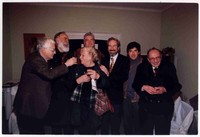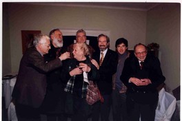 Manuel Silva Junto a Miguel Arteche, Renato Irarrazabal, Stella Díaz Varín, Enrique Volpe, Francisco Vejar y Emilio Oviedo.