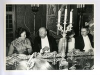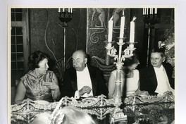 Pablo Neruda, en la cena de premiación del Premio Nobel de Literatura de 1971. Lo acompañan Margaret Meagher, Embajadora de Canadá en Suecia y Olof Palme, Ministro de Suecia.