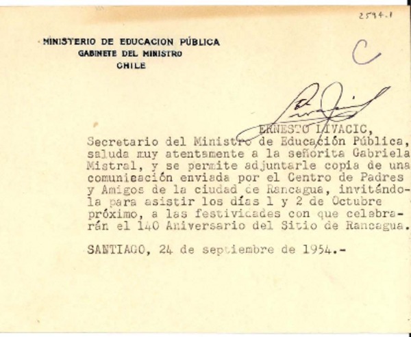 Livacic G., Ernesto - Plath, Oreste - Manuscritos chilenos - Autores chilenos - Correspondencia