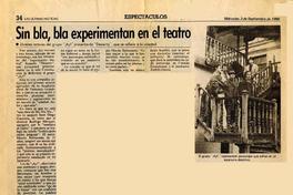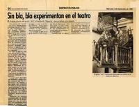 Sin bla, bla experimentan en el teatro [artículo]. Las Últimas Noticias (Diario : Santiago, Chile)-- sept. 3, 1986, p. 34 .