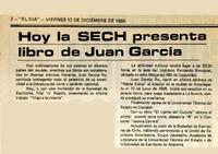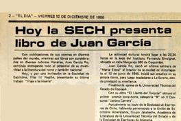 Hoy la SECH presenta libro de Juan García [artículo]. El Día (Diario : La Serena, Chile)-- dic. 12, 1986, p. 2. .