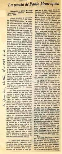 La Poesía de Pablo Manríquez [artículo]. La Discusión. -- mayo 17, 1986, p. 2. .