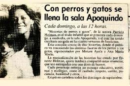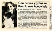 Con perros y gatos se llena la sala Apoquindo [artículo]. Las Últimas Noticias (Diario : Santiago, Chile)-- ago. 31, 1990, p. 36 retr. .