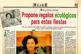 Propone regalos ecológicos para estas fiestas [artículo] / Bárbara Hayes. La Nación. -- dic. 23, 1990, p. 7 (segundo cuerpo) retr. .