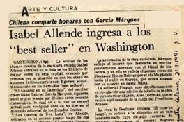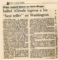 Isabel Allende ingresa a los "best seller" en Washington. [artículo] El Mercurio (Diario : Antofagasta, Chile)-- ene. 31, 1991, p. 4. El Mercurio (Diario : Calama, Chile)-- ene. 31, 1991, p. 4. .