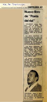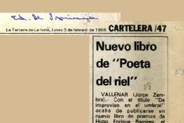Nuevo libro de "Poeta del riel" [artículo] / Jorge Zambra. La Tercera. -- Ed. de provincia. -- feb. 3, 1986, p. 47 retr. .