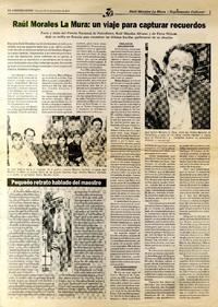 Raúl Morales la Mura: un viaje para capturar recuerdos. [artículo] El Observador (Valparaíso, Chile)-- sept. 29, 2000, p. 3. retr. .
