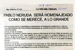 Pablo Neruda será homenajeado como se merece, a lo grande [artículo] La Voz del Choapa (Illapel, Chile)-- no. 5622 (mayo 13, 2004) p. 6. .