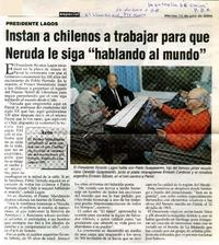 Instan a chilenos a trabajar para que Neruda le siga "Hablando al mundo" [artículo] La Estrella (Chiloé, Chile)-- jul. 13, 2004, p. B8. El Llanquihue (Diario : Puerto Montt, Chile)-- retr. .