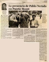 La presencia de Pablo Neruda en Puerto Montt [artículo] / Juan Carlos Velázquez Torres. El Llanquihue (Diario : Puerto Montt, Chile)-- jul. 11, 2004, p. A8. retr. .