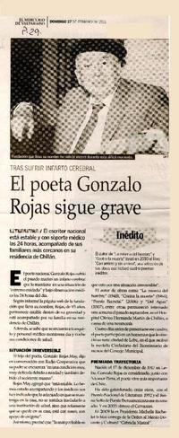 El poeta Gonzalo Rojas sigue grave [artículo] El Mercurio (Diario : Valparaíso, Chile)-- feb. 27, 2011, p. 29 .