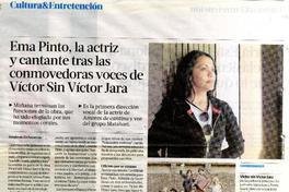 Ema Pinto, la actriz y cantante tras las conmovedoras voces de Víctor Sin Víctor Jara [artículo] / Estefanía Etcheverría La Tercera (Diario : Santiago, Chile)-- sep. 28, 2013, p. 101 .