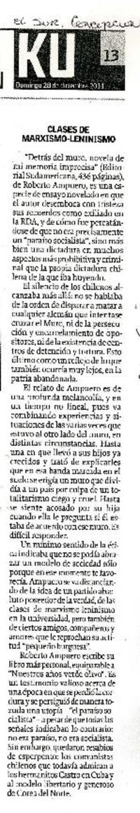 Clases de Marxismo-Leninismo [artículo] El Sur (Diario : Concepción, Chile) diciembre 28, 2014, página 13 (KU) .