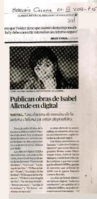 Publican obras de Isabel Allende en digital. [artículo] El Mercurio (Diario : Calama, Chile)-- mar. 1, 2012, p. 15. .