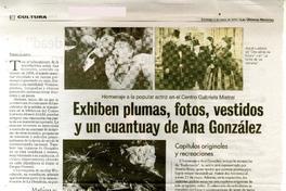 Exhiben plumas, fotos, vestidos y un cuantuay de Ana González [entrevista] [artículo] Fabián Llanca.