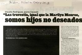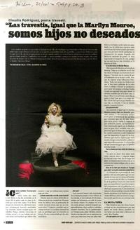 "Las travestis, igual que la Marilyn Monroe, somos hijos no deseados para todo sistema" [entrevista] [artículo] / Macarena Gallo. The Clinic (Diario : Santiago, Chile)-- Año 15, no 604 (Junio 22, 2015), páginas 26-28. .