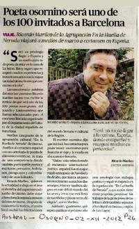 Poeta osornino será uno de los 100 invitados a Barcelona. [artículo] El Austral (Diario : Osorno, Chile)-- Diciembre 2, 2013, página 26. .