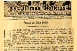 Poesía de Olga Solari [artículo] / Raúl Cuevas. Las Últimas Noticias (Diario : Santiago, Chile)-- Febrero 4, 1945. .