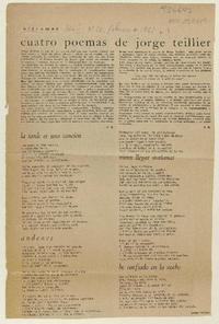 Cuatro poemas de Jorge Teillier [artículo]. Ultramar (Santiago, Chile)-- no. 10 (feb. 1961) p. 7. .