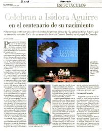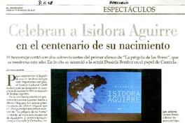 Celebran a Isidora Aguirre en el centenario de su nacimiento [artículo] : Javier Ossandón R.