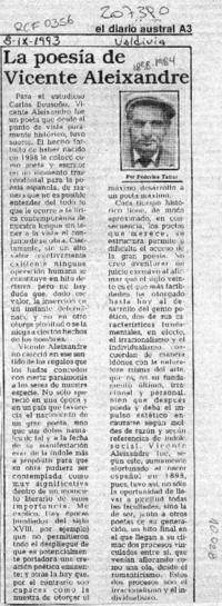 La poesía de Vicente Aleixandre [artículo] / Federico Tatter. El Diario Austral (Diario : Valdivia, Chile)-- sept. 8, 1993, p. A3. .