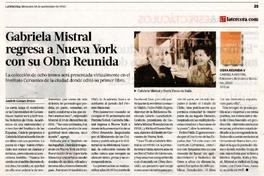 Gabriela Mistral regresa a Nueva York con su Obra Reunida [artículo] Andrés Gómez.