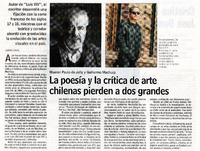 La poesía y la crítica de arte chilenas pierden a dos grandes [artículo] Jazmín Lolas