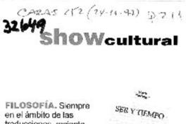 Show Cultural. Filosofía. [artículo] Caras (Revista : Santiago, Chile)-- no. 252 (Noviembre 1997), p. 211. .