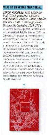 Atlas de bienestar territorial. [artículo] En Concreto (Revista : Santiago, Chile)-- no. 194, (Octubre 2019), p. 96. .