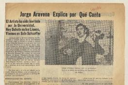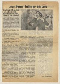 Jorge Aravena explica por qué canta [entrevista]. [artículo] : Nuevo Central (Diario : Chillán, Chile)-- ago. 5, 1970, p. 9. .