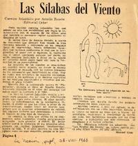 Las sílabas del viento [artículo] / Manuel Cruz. La Nación (Diario : Santiago, Chile)-- ago. 28, 1966, (suplemento). .