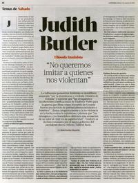 Judith Butler "No queremos imitar a quienes nos violentan" [entrevista] / [artículo] : Por Paula Escobar Chavarría La Tercera (Diario : Santiago, Chile)-- mar. 5, 2022, p. 22-23. .