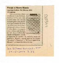 Pasaje al nuevo mundo. [artículo] Las Últimas Noticias (Diario : Santiago, Chile)-- mayo 29, 2004, 37. .
