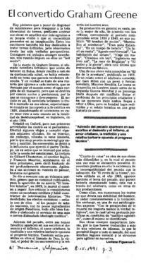 El Convertido Graham Greene [artículo] / Luciano Figueroa C. El Mercurio (Diario : Santiago, Chile)-- abr. 8, 1991, página 3. 1 página. .