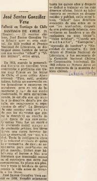 Colección: Archivo de Referencias Críticas / José Santos González Vera / Necrología