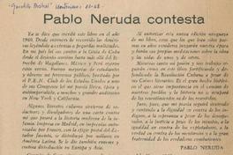 Pablo Neruda contesta / "Gacetilla Austral" Montevideo 12, 1968 -- Pablo Neruda -- Una carta abierta al jurado del Premio Novel / El Plata, Montevideo, 3 de diciembre, 1963 -- Por Ricardo Paseyro -- El pleito Neruda - Sur - Marcha / La Gaceta, Montevideo, 16 de mayo, 1953 -- Repetición de lo de Estocolmo / Publicado en Montevideo entre el 8 y 19 de 1952 -- Pablo Neruda esta desde anoche en nuestra ciudad / Montevideo -- Pablo Neruda paso por Montevideo / "Marcha" Montevideo / Neruda: simpatias y diferencias / En Marcha, 8 de marzo, 1968 -- Dos formas de influir / Marcha, junio 9 de 1967 -- Mario Benedetti -- Chile: Neruda se defiende / Marcha 5 de agosto, 1966 -- Hans Ehrmann -- Pablo sobre Gabriela: Una tumba perdida / Marcha, 18 de diciembre, 1964 -- Pablo Neruda -- Un poema inédito de Pablo Neruda / Marcha 21de julio. 1964 -- Paseyro vs. Neruda / Marcha 24 de enero, 1964 -- "Me acostumbre a morir mas de una muerte" / Marcha, 13 de septiembre, 1963 -- María Ester Ghio -- Neruda de cuerpo entero / Marcha 13 de noviembre, 1963 -- A. R. -- Donde el rocio tiene otras virtudes / Marcha, 1 de abril, 1960 -- Por Gonzalo de Freitas -- Respuesta en llana prosa / Marcha, 1 de abril, 1960 -- Angel Rama --