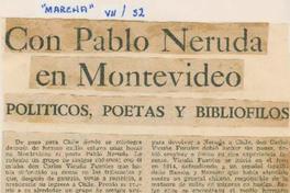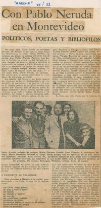 Con Neruda en Montevideo / Marcha, julio de 1952 -- Emir Rodriguez Monegal -- Sobre el pleito Neruda - Jiménez / Marcha, Montevideo 1952 -- Un desagravio a Pablo Neruda / Marcha, 1 de febrero, 1952 -- Del Sr. Gastón Figueire -- Un poema reciente de Pablo Neruda / Marcha, marzo, 1952 -- El tema de América en "El Canto general" / Por Sarandy Cabrera -- Con Neruda en Montevideo, Políticos, poetas y bibliófilos / Marcha, 1952 -- La Lámpara en la tierra / Marcha Montevideo, 7 de noviembre, 1951 -- Por Pablo Neruda -- Yo Soy, "Canto general de Pablo Neruda" / Marcha, 12 de enero, 1951 -- Asteriscos 1950 / Marcha, 29 de diciembre, 1952 -- El tema de América, " En el Canto general" / Marcha Montevideo, 1952 -- Poesía 1951 / Marcha Montevideo, 1952 -- Noticias actuales sobre Pablo Neruda / Marcha Montevideo, 30 de noviembre, 1949 -- Ricardo Paseyro --