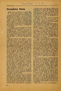 Actividades literarias y artísticas en Chile / R. Horcajada -- González Vera y Gabriela Mistral / Augusto Iglesias -- González Vera nos dijo / Franklin Arriagada y José Rimsky -- Algo sobre González Vera / Gabriela Mistral -- Un moneto y tres escritores / Por Mario Bahamonde -- José Santos González Vera / Ricardo Latcham -- Un espiritu travieso se oculta en Golzález Vera / Por Georgina Duran -- Baldomero Lillo / Viñetas Literarias / Por Victor Franzani -- Cobardes de ayer, valentosos de hoy / Raúl González Tuñon --