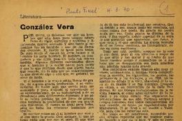 González Vera / Manuel Rojas -- Memorias de un desmoriado / Por Alone-- Murio González Vera. El hombre sencillo mas grande de la literatura chilena / González Vera / Manuel Rojas -- Carta desde Santiago, González Vera prosista / Por Emir Rodríguez Nocegal -- Crónica Literaria / Por Alone -- Babel: clarinada en cuatro tonos / Por Mario Ferrero -- González Vera y el humor literario / Por Lorenzo Campana -- Los dos / Julio Cesar -- Unos recuerdos de González Vera / Por Roberto Baeza Flores -- José Santos González Vera / Luis Alberto Sanchez -- José Santos González Vera Premio Nacional de Literatura / César Silva Cortés -- El hombre y su huella, José Santos González Vera / Por Luz Machado de Arnao -- Sanción efectiva contra los malos funcionarios / Mario Espinoza Welmann -- El yo en la literatura chilena / Alone -- Sucesos íntimos / Luis Merino Reyes -- Arte, vida y humor en la obra de González Vera / Leopoldo Castedo -- El niño en la obra de González Vera / Juan Sandoval C. -- Recuerdos de una visita de González Vera / Por Rodolfo Garces Guzmán --