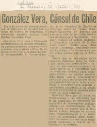¿Cómo, cuándo y por qué se hizo usted escritor? / González Vera, Cónsul de Chile / Quince minutos con González Vera / Salvador Reyes -- Homenaje a la memoria de José Santos González Vera / José Santos González Vera y "El Dios de los artístas" / Por Rodolfo Garces Guzmán -- Mis contactos con González Vera / Pablo Llona Barros -- "Mis relaciones con la religión" / Alone -- Filosofía y ciencia / Alone -- Literatura chilena: Algunos cuentistas / Por Gabriela Mistral -- El Centro de Santiago, que puede tener alma y corazón de gran ciudad / González Vera / Alberto Homero --