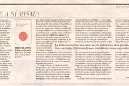 Un viaje a si misma [artículo] / Pedro Gandolfo. El Mercurio (Diario : Santiago, Chile)-- abril 3, 2022, página E7 ("Artes y Letras""Revista de Libros"). 1 página : ilustración en color ; 13 cm. .